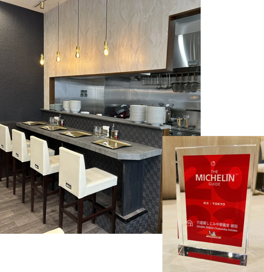 「宍道湖しじみ中華蕎麦 琥珀」は、創業以来、ラーメン業界最高権威の「TRYラーメン大賞」や「ラーメンWalkerグランプリ」の新人・新店部門で日本一を獲得。また「ミシュラン東京」にも5年連続で掲載される等、名実ともに日本を代表するラーメン店へと成長することができました。